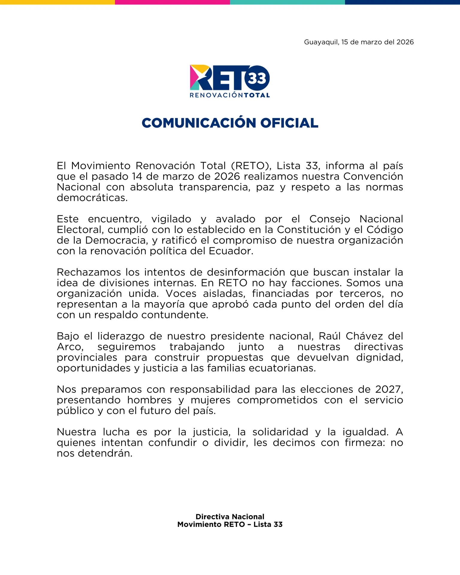 RETO es un movimiento político ecuatoriano de centro izquierda fundado el 4 de febrero de 2022.